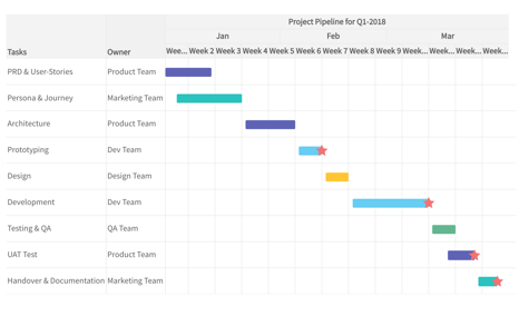Visualize tasks, phases, dependencies and milestones across projects to give teams and stakeholders a shared view of delivery timelines.